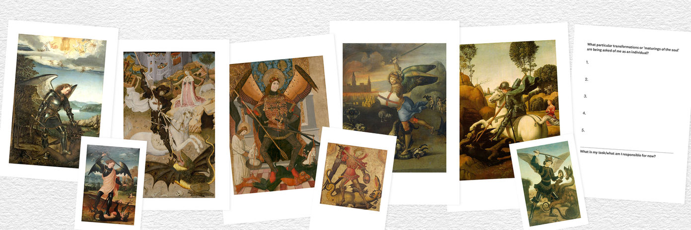 When I facilitated a workshop recently – for a group of experienced meditants – we looked at the themes of self-investigation, transformation and renewal. One of the images I chose to work with was Archangel Michael and the Dragon – which can remind us of our own personal power in respect to overcoming the ‘shadow’ aspects of ourselves. It requires strength, focus and courage to meet and redeem our personal shadow-demons. As well as daily perseverance and dedication to our own personal growth, the words ‘I BELIEVE IN MYSELF’ can be fostered within, as a reminder of the authentic power we all carry at the centre of our being. Believing in oneself is the ‘spiritual spearhead’ with which we can meet all of life’s challenges and difficulties.